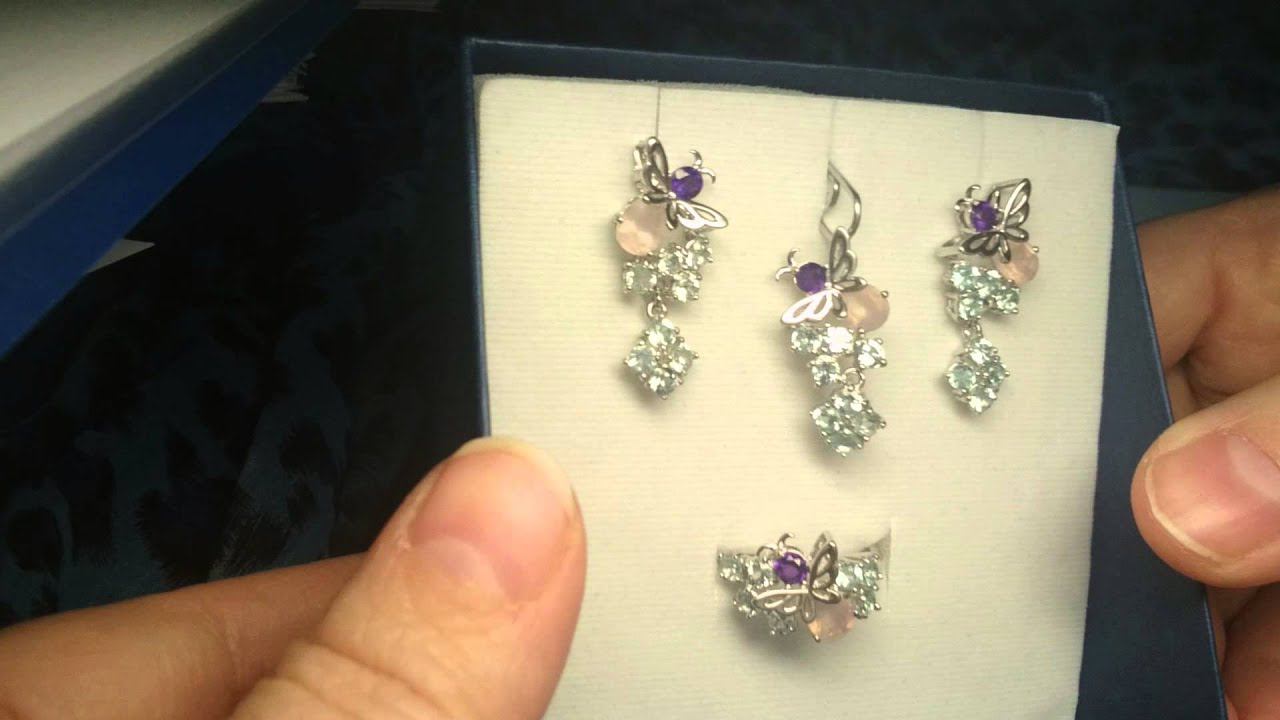 серебро 925 комплект кольцо, серьги, кулон. розовый кварц аметист топаз