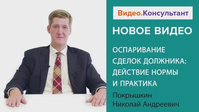 Видеоанонс лекции Н.А. Покрышкина "Оспаривание сделок должника: действие нормы и практика"