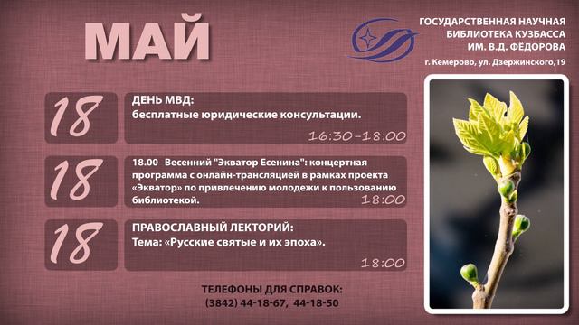 Дорогие друзья! Предлагаем Вашему вниманию анонс мероприятий, планируемых в мае.