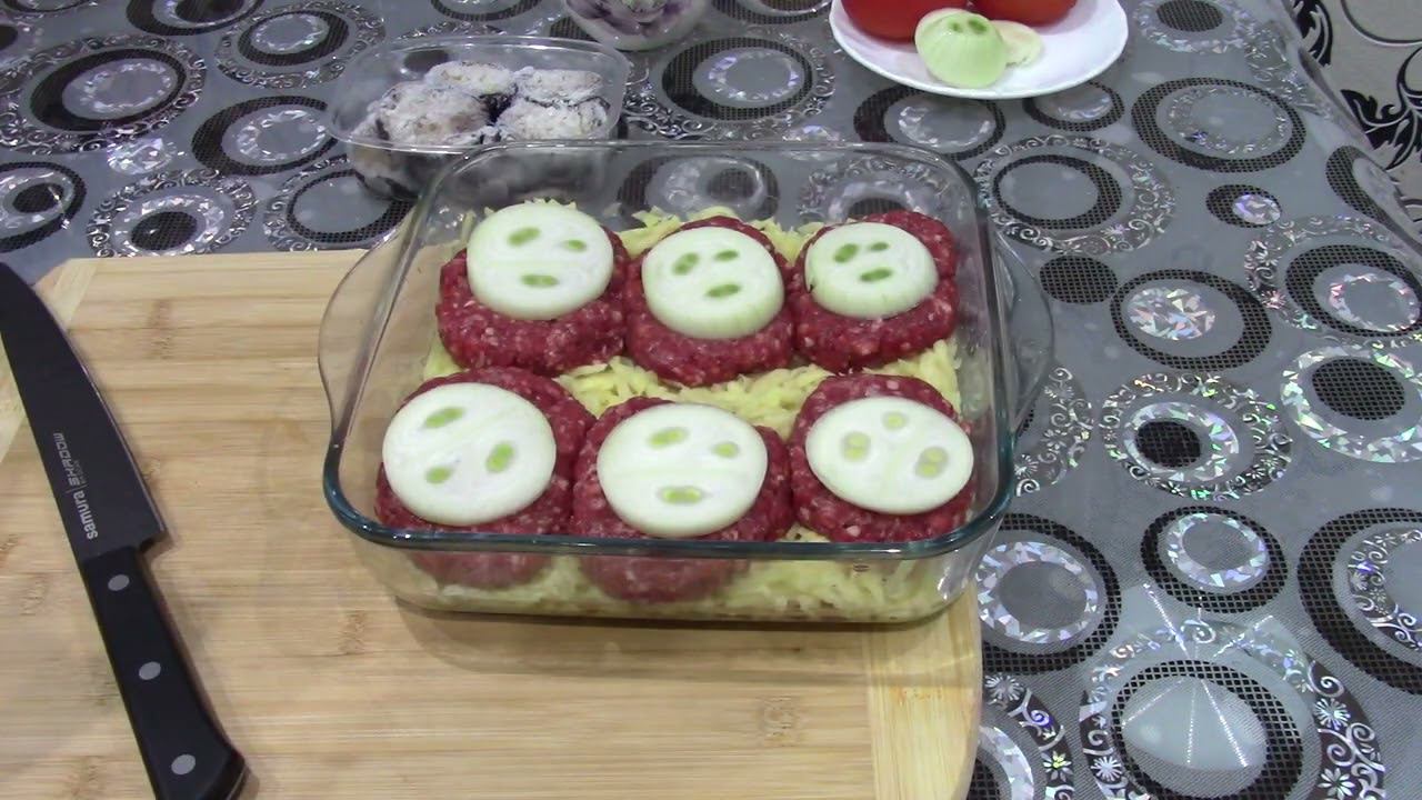 Снежки из говяжьего фарша с томатами, сыром и тертым картофелем!