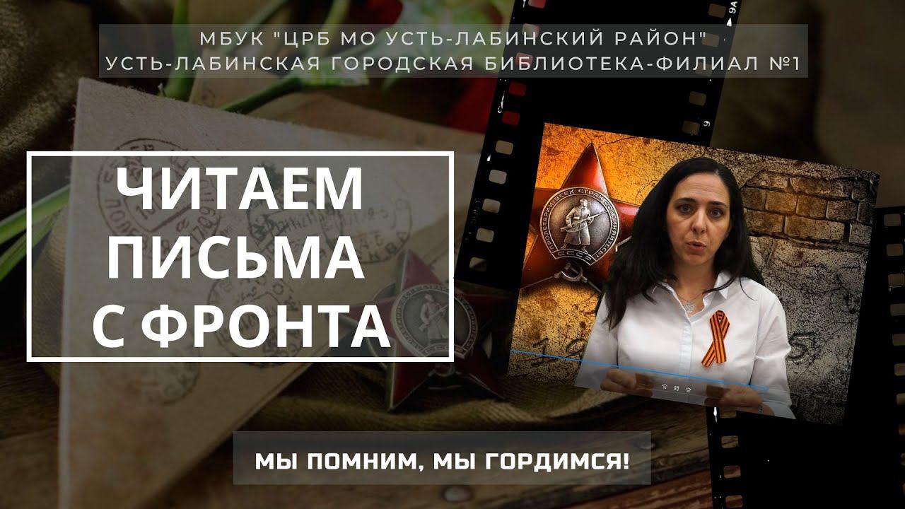 В годы Великой Отечественной войны миллионы людей оказались оторванными от родного дома, семьи. Фронтовые письма были единственной возможностью для людей услышать друг друга за тысячи километров. А сейчас и для нас это тоже возможность услышать голоса фронтовиков, наших земляков, узнать скромную правду о страшных для всей страны днях. Читая в канун дня Победы эти письма, мы отдаем дань уважения всем, кто завоевал свободу для будущих поколений от фашистского порабощения. Инна Абдуллагаджиева читает письмо своего прадедушки к дочери — бабушке Инны Курбановны. Ее прадед и бабушка находились на фронте по двум сторонам Черного моря — в Крыму и в Сукко. Спустя некоторое время после получения этого письма семья получила уведомление о том, что прадед пропал без вести. Его нашли лишь в конце 90-х годов — военкомат прислал уведомление, что Сташенко Даниил Николаевич похоронен в братской могиле в Бахчисарае. Мы чтим мужество предков и гордимся героями наших дней. #МЫВМЕСТЕ #ДеньПобеды #Наши_Герои #9Мая #устьлабинскийрайон #устьлабинскоегородскоепоселение #МБУКЦРБМОустьлабинскийрайон #onlineбиблиотекаустьлабинская1 #онлайнбиблиотека #письмаВОВ #письмасфронта #мыпомниммыгордимся #великаяпобеда #9мая #деньпобеды #бессмертныйполк #ПобеднаяВеснаНаКубани