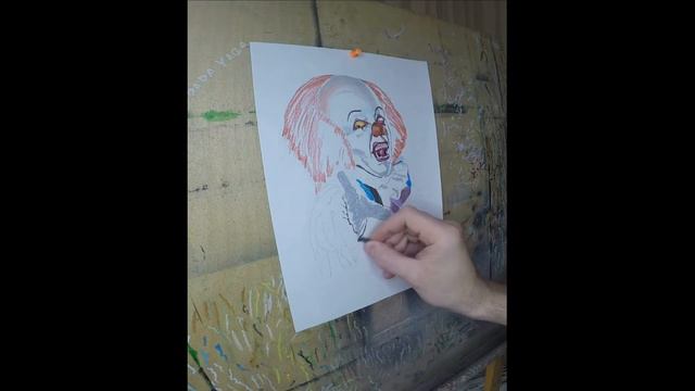 drawing Pennywise (It) from the 1990 movie материалы: пастель, уголь, ручка