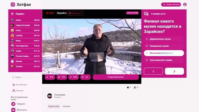 Викторина платформы интерактивных викторин ХитФан и телеканала 360 Подмосковье, посвященная Зарайску от 16 ноября