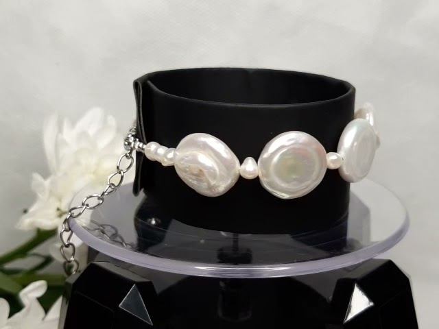 Браслет жемчуг Барокко диски 15 мм., длина 20-25 см.