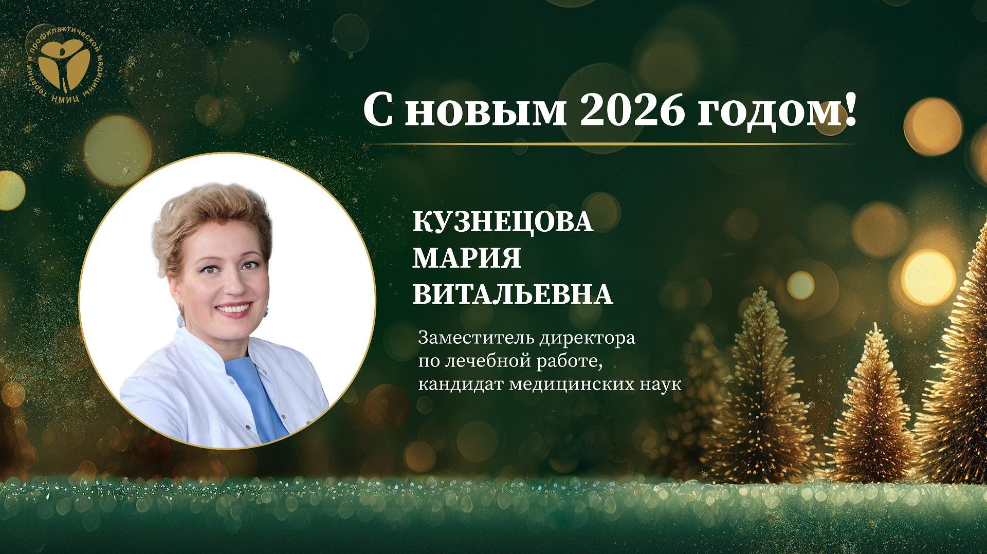 ❤️Дорогие коллеги и пациенты! 🎄С наступающим Новым 2026 годом вас поздравляет Кузнецова Мария Витальевна, кандидат медицинских наук, заместитель директора по лечебной работе ФГБУ «НМИЦ ТПМ» Минздрава России.
