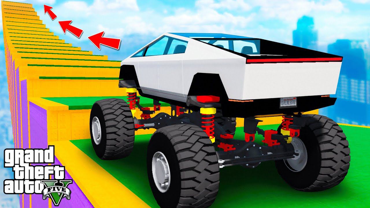 КАК ДАЛЕКО БИГФУТ КИБЕРТРАК СМОЖЕТ ЗАБРАТЬСЯ ПО СТУПЕНЬКАМ ЛЕСТНИЦЫ в ГТА 5 МОДЫ ЭКСПЕРИМЕНТЫ GTA 5