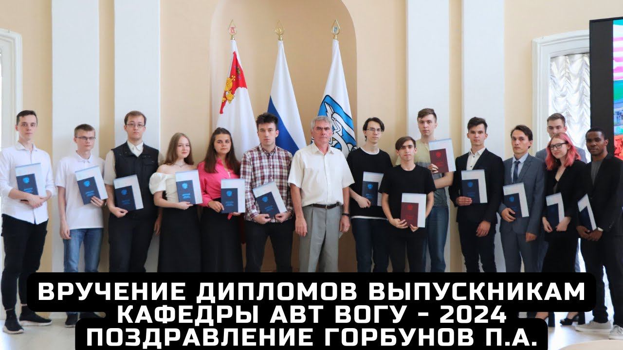 Вручение дипломов выпускникам кафедры АВТ ВоГУ 2024. Поздравление Горбунов Павел Александрович.