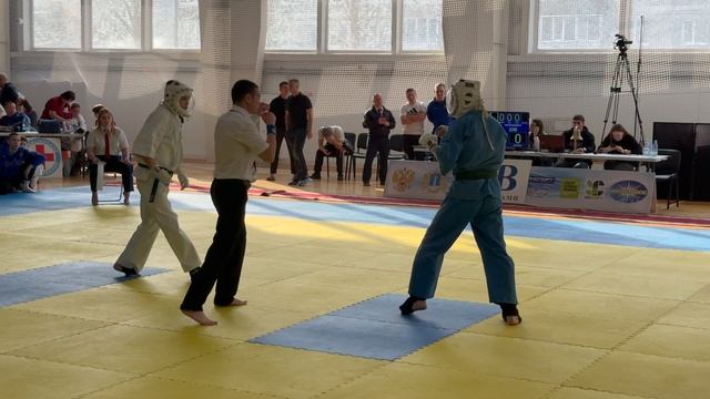 22.02.2025 в Ульяновске прошли V Всероссийские соревнования по кудо на призы ветерана Воздушно-десантных войск, гвардии генерал-майора Орлова В.И. Бой в категории 230 ед. 16-17 лет. В синем Георгий Леонов (Ульяновская обл.), в белом Даниил Тихонов (Респ. Татарстан).
