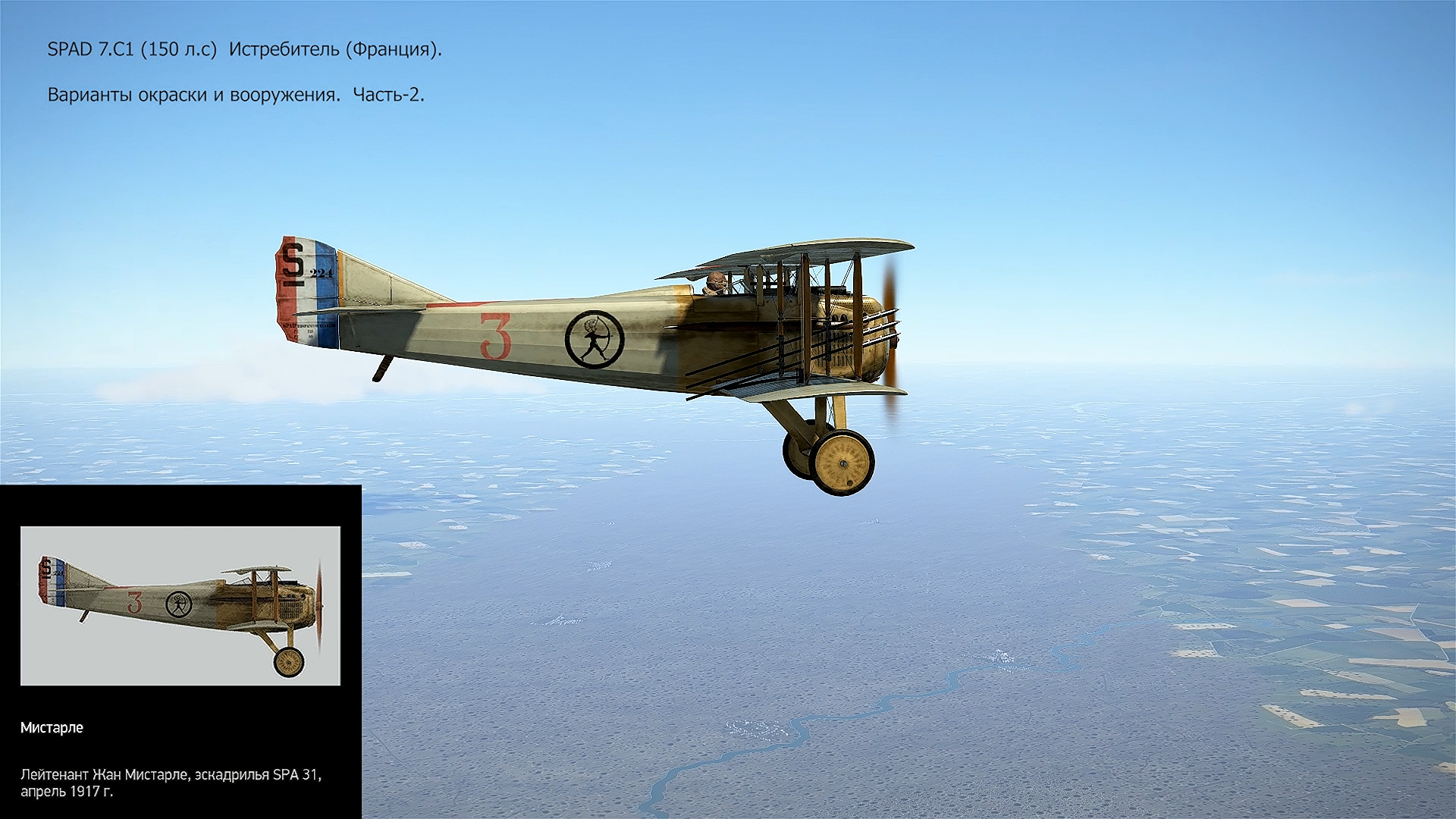 SPAD 7.C1 (150 л.с) Истребитель (Франция). Варианты окраски и вооружения. Часть-2. Симулятор «Flying Circus – Volume ll".