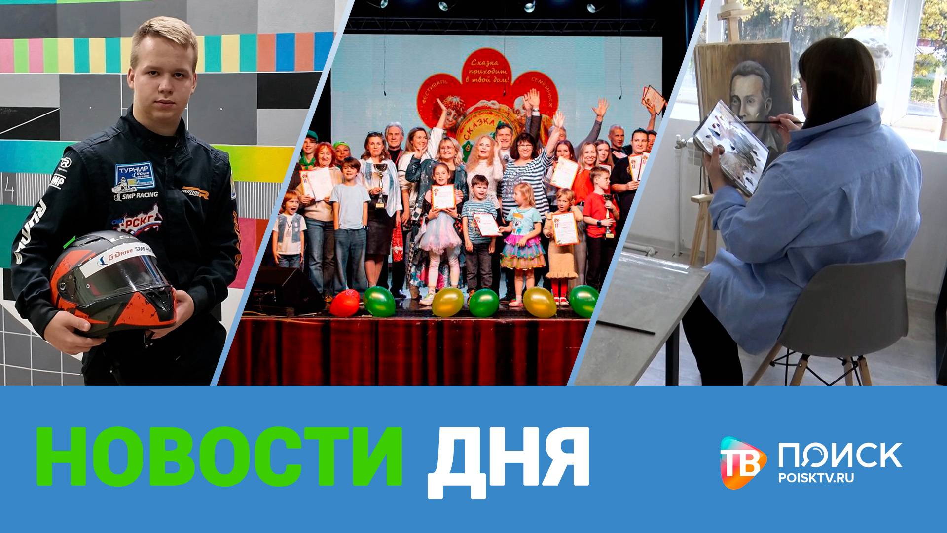 * Цифра надёжней бумаги. В Московской области реализуют пилотный проект по переходу на электронные квитанции. Позитивный опыт масштабируют на всю страну. * Обошел соперников на повороте. Клинский картингист Иван Горячев стал победителем в летней сессии Rumos racing. В своей возрастной категории гонщик оказался лучшим из одиннадцати участников. * Наши люди. Телекомпания "Поиск" приступила к съемкам очередной серии историко-краеведческого проекта. На этот раз авторы программы расскажут о последнем владельце усадьбы Демьяново. * Клинская труппа "Школа "Альфа" стала победителем регионального этапа Всероссийского фестиваля семейных любительских театров "Сказка приходит в твой дом". За право выйти в финал на сцене клуба "Стекольный" сразились 10 творческих коллективов из Москвы и Подмосковья. Об этом и не только в программе "Новости дня"