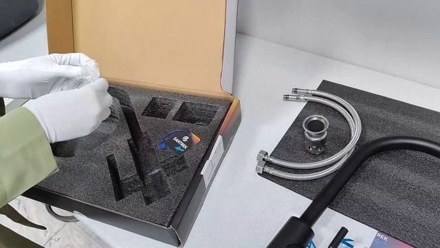 Смеситель Кухня SANTREK AQUA-805 "INOX" шар d-35 нерж. на гайке (черный)