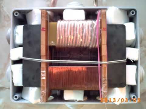 На фото транс. приставка к инвертору. Фиксация ферритов и катушек методом распора. Сначала распор был не очень хорошим, внутри короба транс. был слышен нехороший звук(вибрации ферритов): https://www.youtube.com/watch?v=hlOdP0THU6Y Далее улучшил распоры транс. На ХХ размах около 15кВ и пиковое макс. в одну полярность до 8кВ. Если в дальнейших тестах напряжение выше не будет, то мост нужно делать на 10кВ и на столько же конденсатор. https://www.youtube.com/watch?v=cH8RFdC-ik8 Обрызгивание водой дуги: https://www.youtube.com/watch?v=xEOI75YHbNs Дуга бьёт в воду, плавится медный электрод: https://www.youtube.com/watch?v=MQcS3tKlPho поддержать канал: 8-999-654-93-44