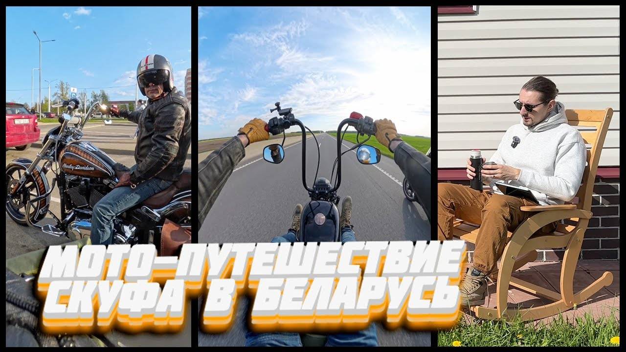 БОЛЬШОЕ мотопутешествие в Беларусь! #мотоблог Скуфа на Харлее. Разбитые дороги и красивые поля.