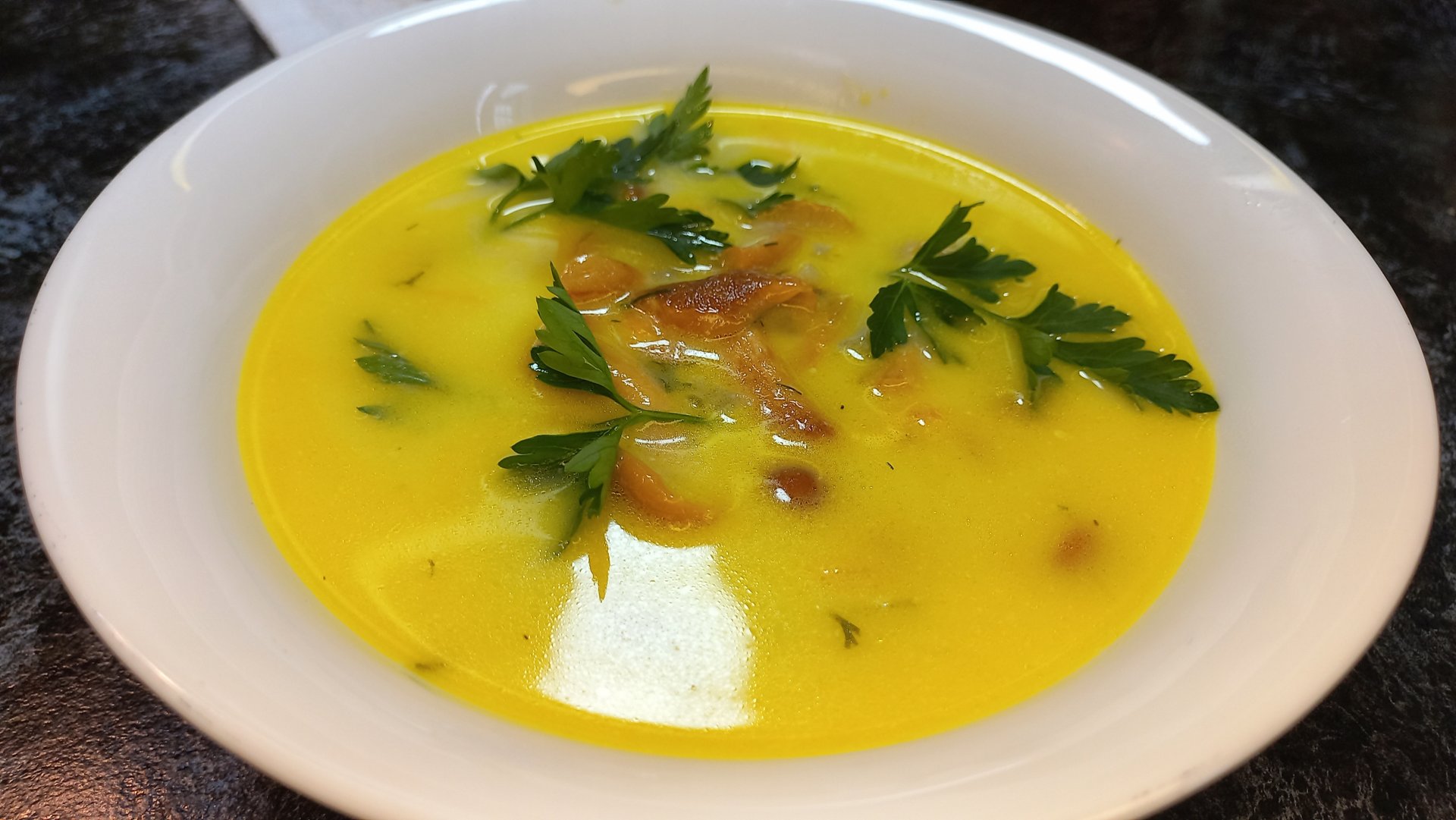 Сырный суп с маринованными опятами