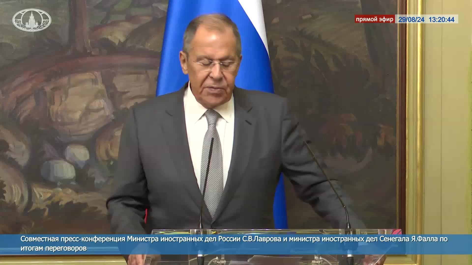 🔴 #ПрямойЭфир: Совместная пресс-конференция С.В.Лаврова с Министром иностранных дел Сенегала Ясин Фалл по итогам переговоров в Москве 29.08.2024