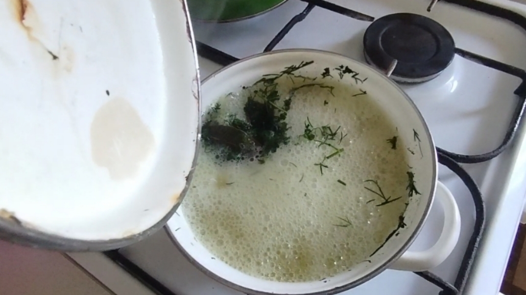 Легкий перекус пельменями с вкусным бульоном из крапивы и укропа.