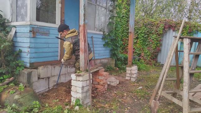 Еду на родину и делаю крыльцо в родительском доме. За 1 день удалось демонтировать старое крыльцо, привезти материалы и сделать подставку под крышу...