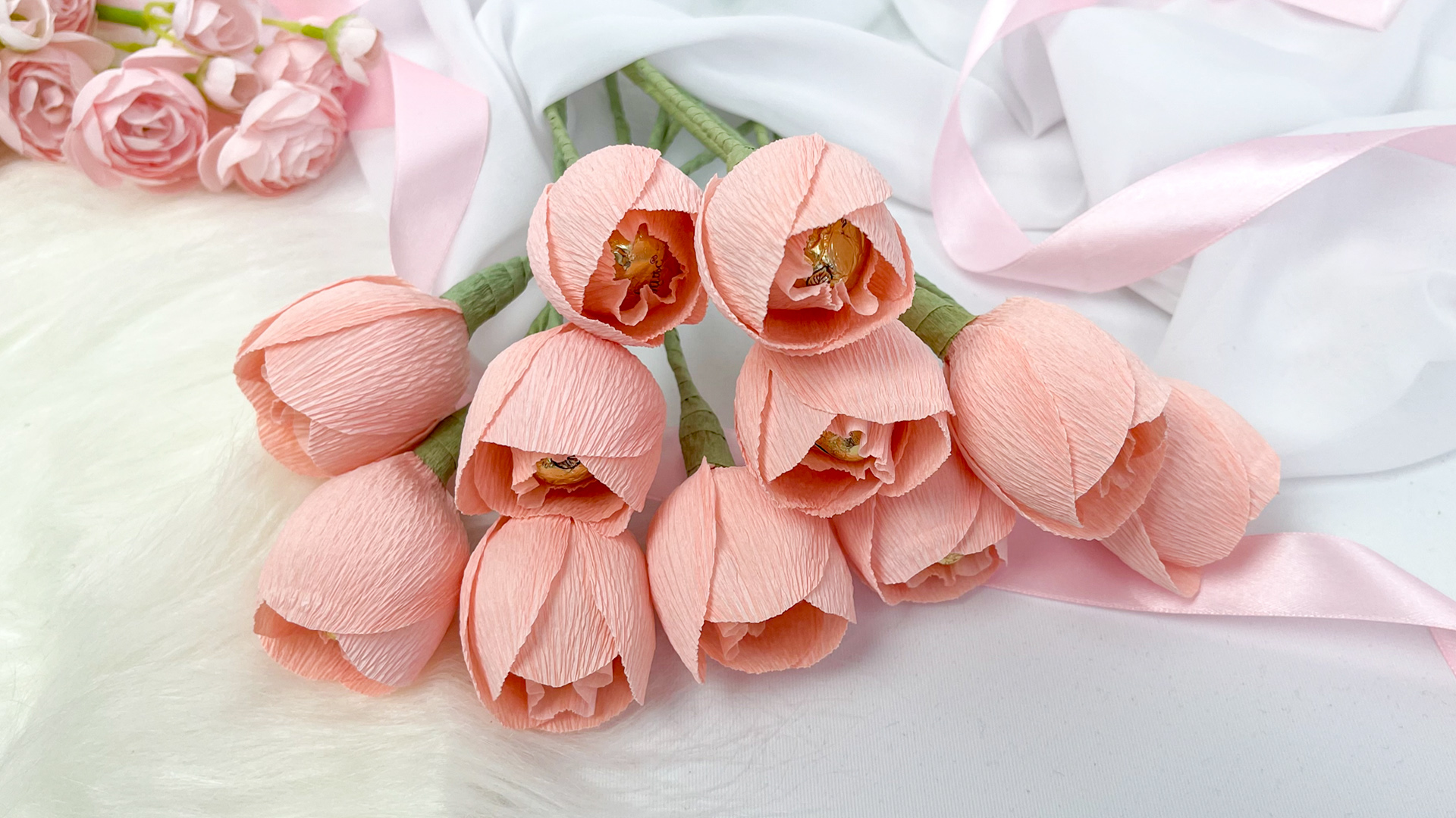 Как сделать тюльпан из бумаги. Бумажный цветок с конфетами. Свит дизайн