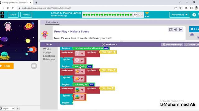 Code.org | Express Course | 2022 | Making Sprites | Lesson 6 | Part 2 | Muhammad Ali |