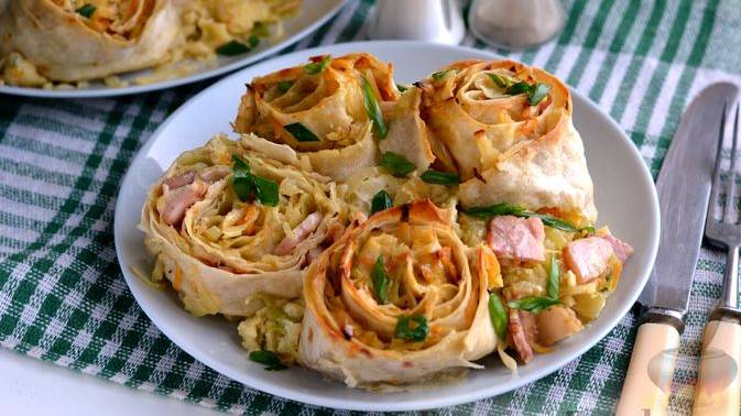 Сделаем вкусно-капустно в духовке! РУЛЕТЫ ИЗ ЛАВАША С КАПУСТОЙ И БЕКОНОМ