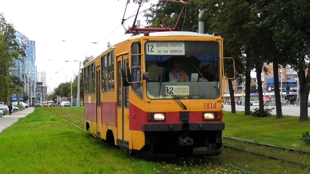 Трамвай Екатеринбурга УТМ 71-402 борт. №804 маршрут 12 следует по улице Челюскинцев