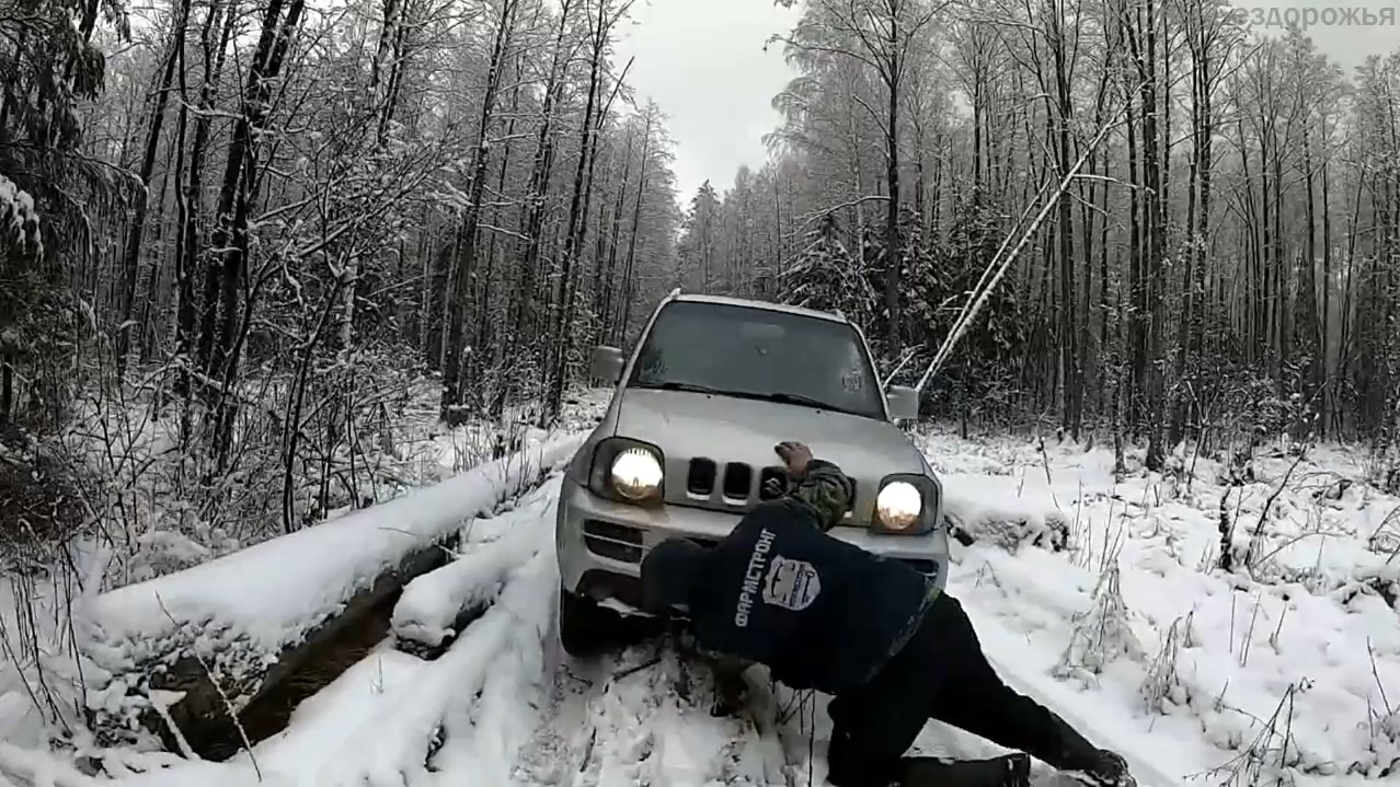 Мини гелик или Внедорожник для города SUZUKI JIMNY на бездорожье в лесном болоте.
