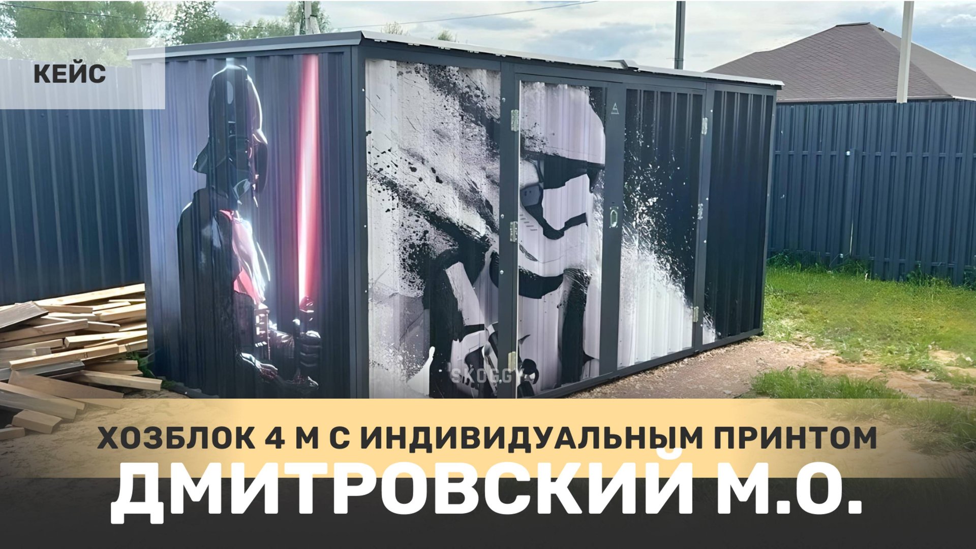 Изготовили для заказчика стандартный 4-метровый хозблок с плоской крышей и боковой воротной группой в строгом графитовом цвете. На торцевую сторону и воротную группу был нанесен потрясающий принт с изображением героев фильма «Звездные войны». Сайт: https://skoggy.ru Группа ВК: https://vk.com/skoggy Дзен: https://zen.yandex.ru/skoggy ОК: https://ok.ru/group/70000000874288 YouTube: https://www.youtube.com/@skoggyru Телеграм: https://t.me/skoggyru