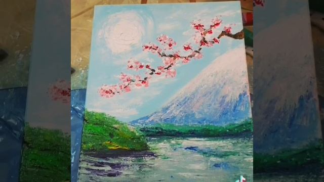 Sakura and Mount Fuji. ? ? Acrylic painting. ? Сакура и гора Фудзияма.? ? Акриловая живопись. ??? #shorts #video #shortvideo #art #love #painting #sakura #fuji #nature #fun