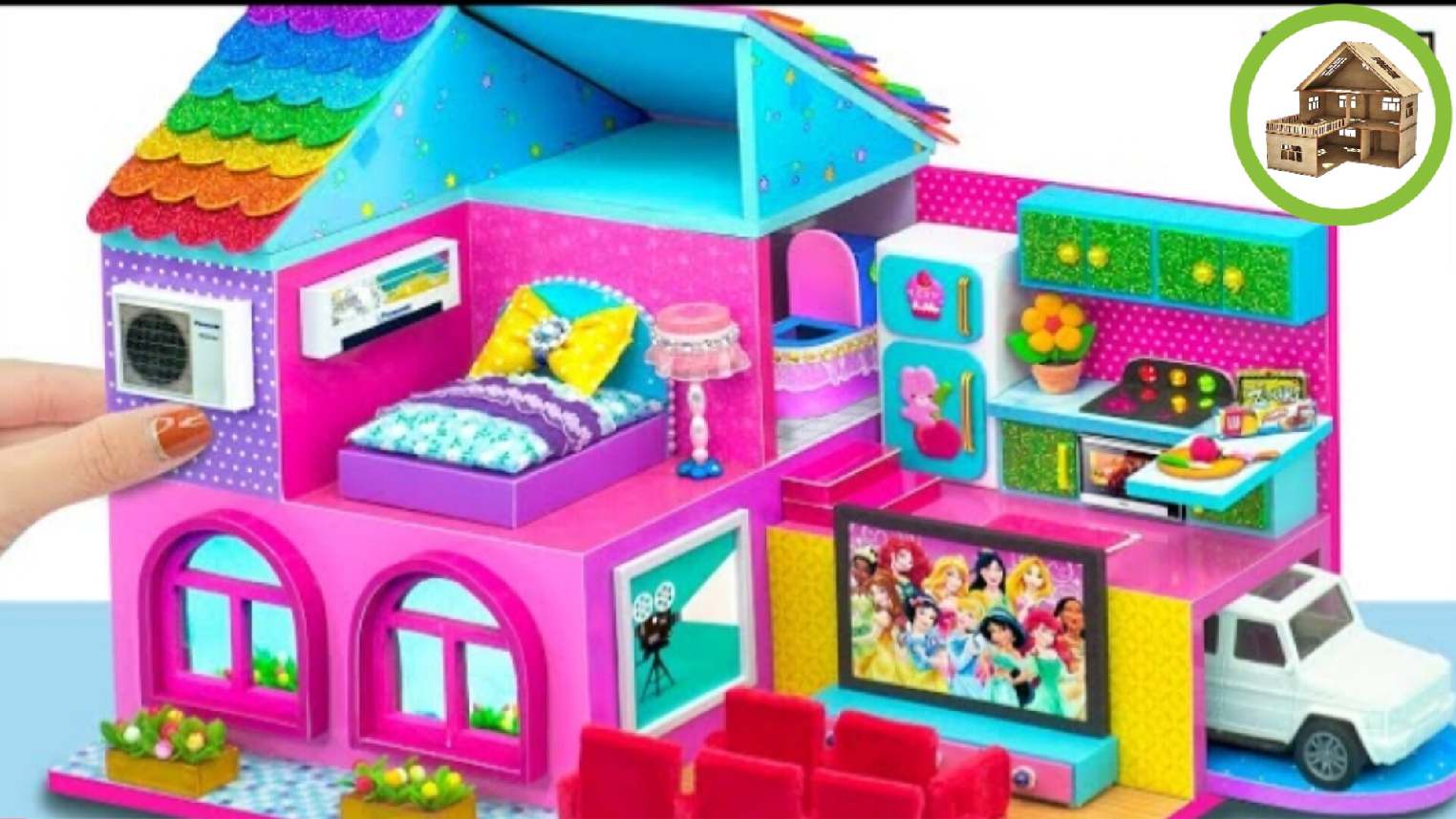 Миниатюрная двух этажная вилла hello kitty с 4 комнатами и кинотеатром для семьи из картона /236