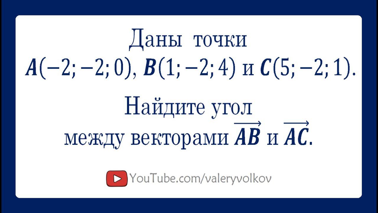 Найдите разложение вектора по векторам (базису): https://youtu.be/vyPEsgOz_-o Коллинеарны ли векторы? https://youtu.be/8P68M-V_g8k Даны точки A(-2;-2;0), B(1;-2;4) и C(5;-2;1). Найдите угол между векторами AB и AC: https://youtu.be/mUPkKcNPeXQ Предыдущее видео: https://youtu.be/k5x7PRzX55s Valery Volkov https://www.youtube.com/valeryvolkov Наш семейный канал: https://www.youtube.com/@arinablog Почта: uroki64@mail.ru