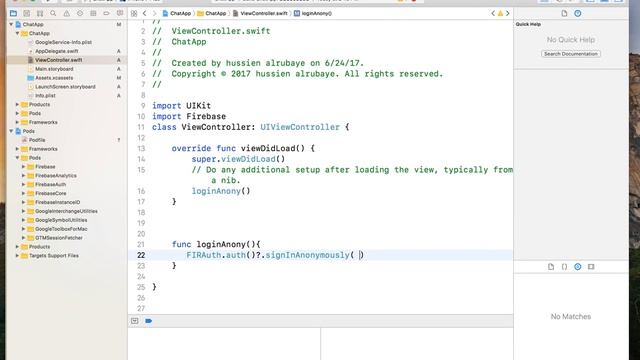 3- iOS11 and Swift4 || Firebase login Anonymously