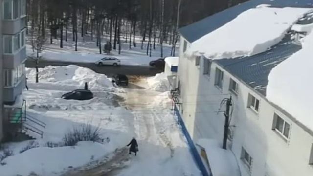Спаслась от схода снега. Бабушка спаслась от схода снега с крыши в Заволжске, Ивановская область. #крыша #снег #спасение