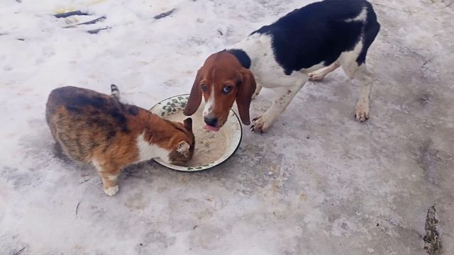 Бим и Пися трапезничают