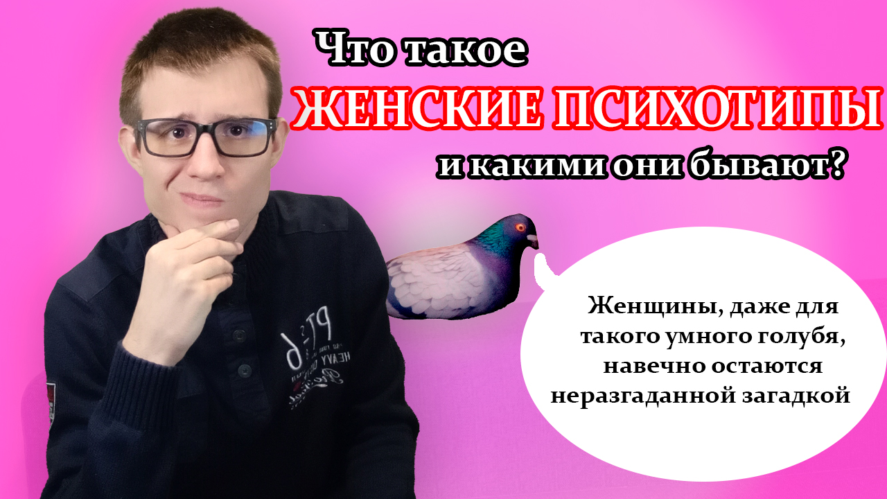 Все привет, меня зовут Михаил, и в этом видео я бы хотел поговорить с вами про женские психотипы. Женский психотип – это комплекс психологических характеристик, который определяет обобщенную модель поведения женщины. Но какие они бывают? И как быть мужчинам со всей этой информацией? Обо всем этом, смотрите в видео! Приятного просмотра!)