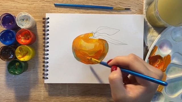 Как нарисовать мандарин карандашом и гуашью для детей | Рисунок поэтапно для срисовки
