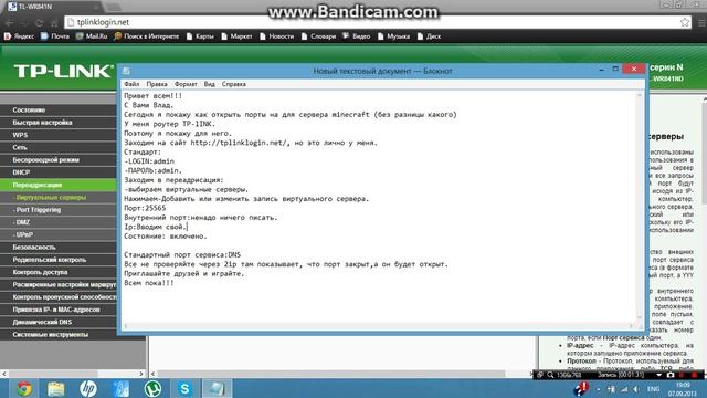 Открытие портов на роутере TP-LINK.