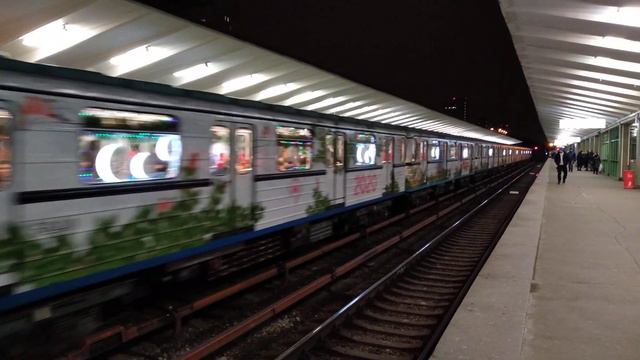 Новогодний метропоезд "Еж3" на станции "Выхино", Таганско-Краснопресненской линии.