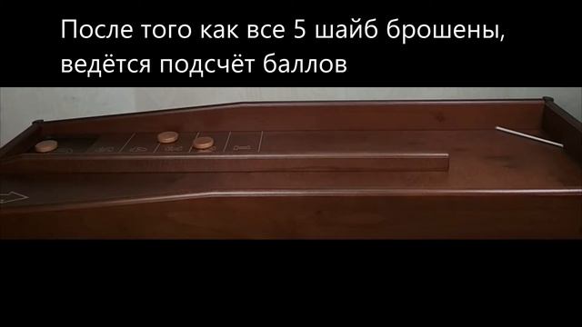 Игроку нужно набрать наибольшее количество баллов, забрасывая шайбу так, чтобы она оттолкнувшись от резиночек на противоположной стороне попала в зону определения баллов.