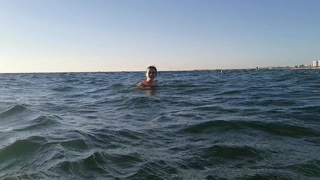 Снимаю Олю, а она возмущается. На море волна. Анапа.