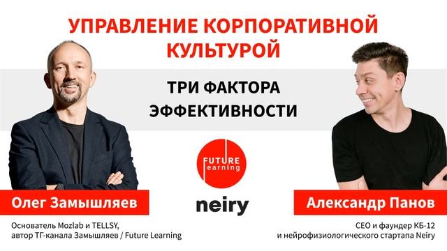 Что такое корпоративная культура? Эфемерное чувство, которое рождается само собой, или перспективный инструмент, с помощью которого можно влиять на прибыль компании? Олег Замышляев, основатель консалтинговой компании Mozlab и сервиса TELLSY, автор телеграм-канала Замышляев / Future Learning (https://t.me/futurelearning) и Александр Панов, (https://t.me/itakblet) CEO и фаундер КБ-12 и нейрофизиологического стартапа Neiry встретились, чтобы это обсудить. В сегодняшнем эфире: • три фактора эффективности корпоративной культуры; • важность КК в компаниях разного типа; • роль руководителя на формирование КК; • рассмотрение конкретных кейсов; • много занимательной статистики. В дополнение рекомендуем скачать и распечатать наше саммари по корпоративной культуре (https://mozlab.ru/corporate-culture-management).