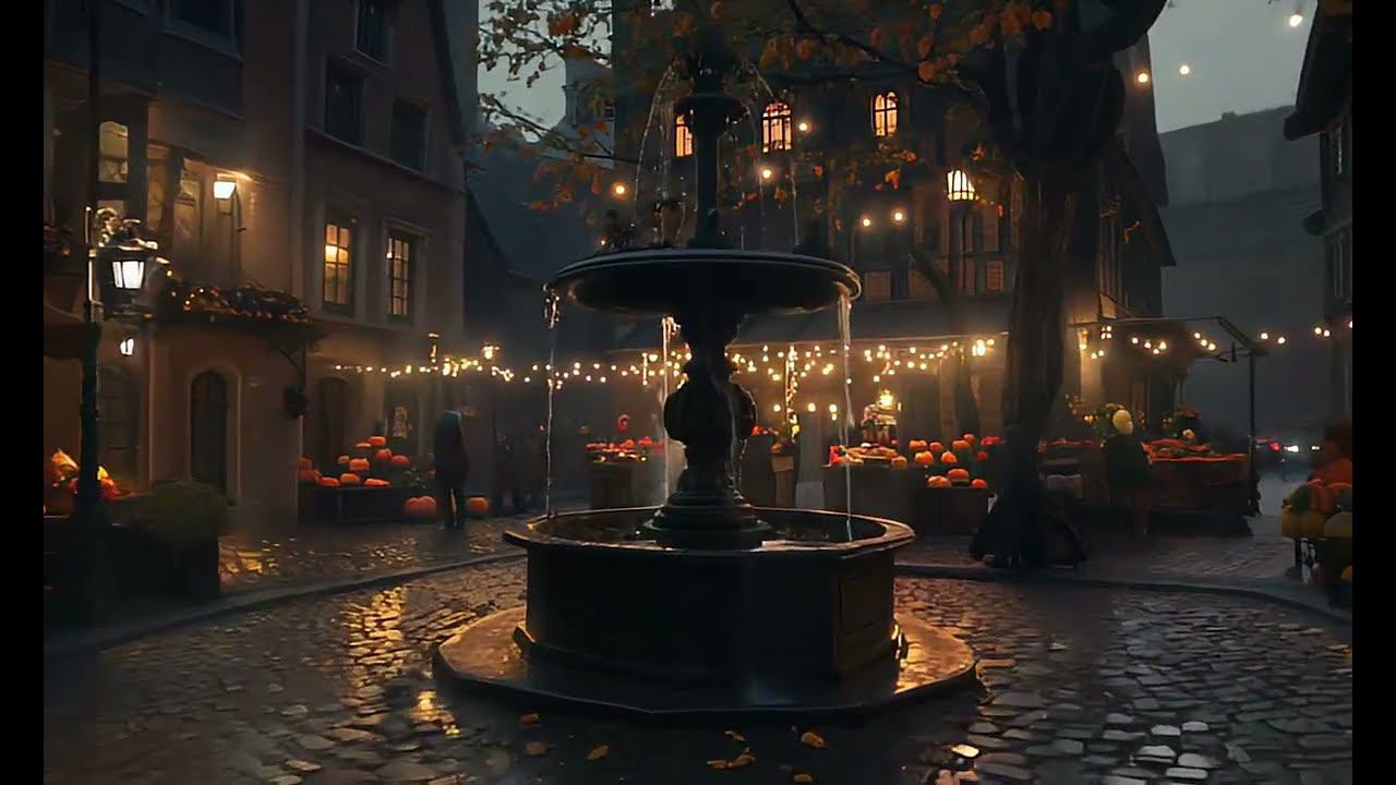 Take a walk through this dark, autumn village. Would you live here #ai