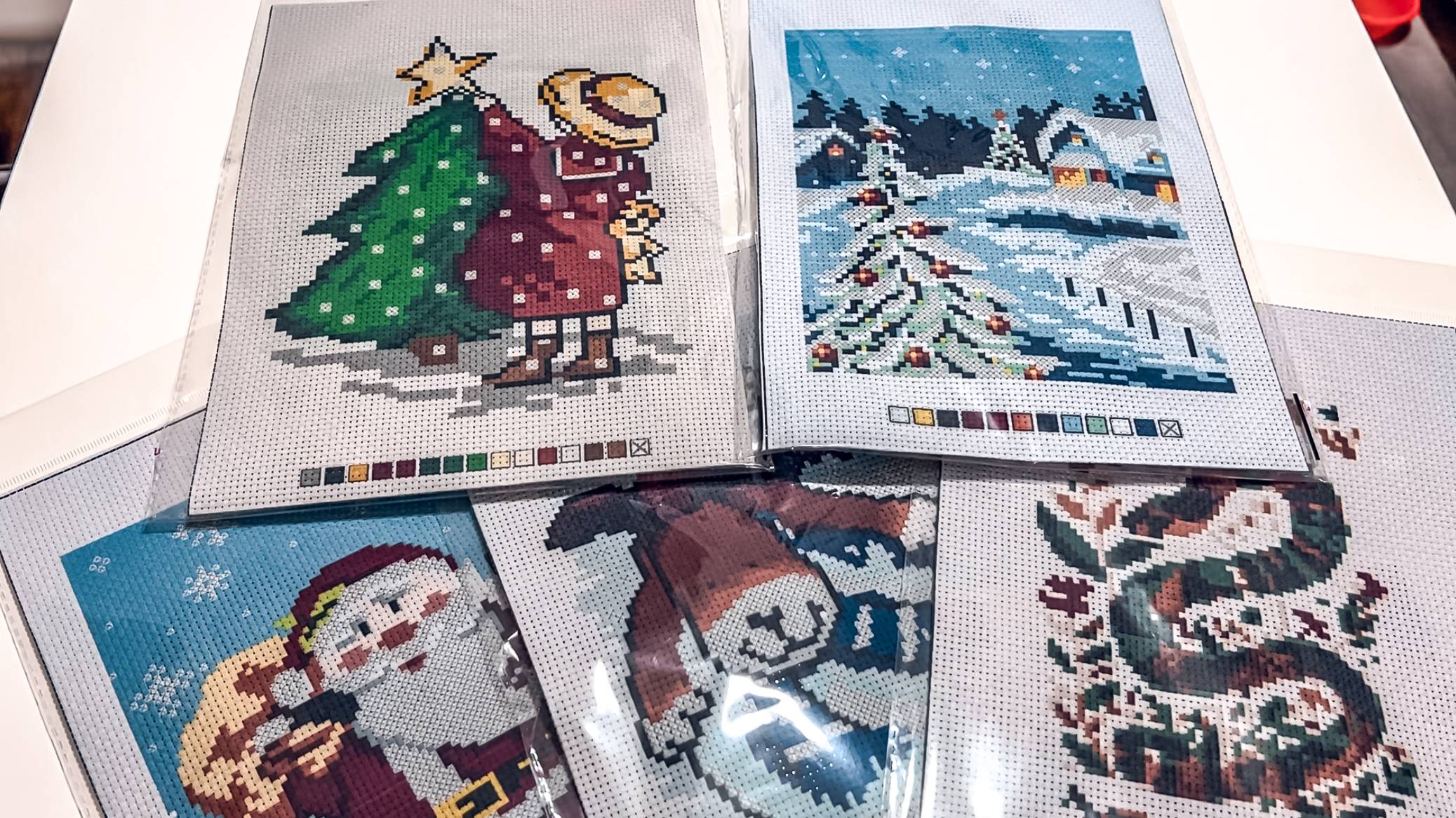 Покупки вышивки крестиком. Вышивки простые, с нанесенным рисунком на канву.