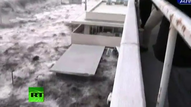Ужасные кадры цунами в Японии (полная версия) (New dramatic video Tsunami wave spills over seawal...