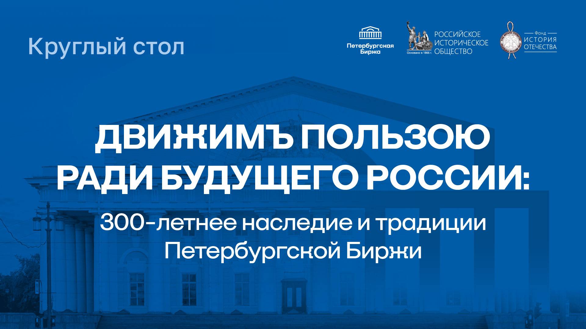 21 мая 2025 года в Доме Российского исторического общества состоялся круглый стол по истории биржевого дела. Мероприятие открыл Председатель Российского исторического общества Сергей Нарышкин: «Решительная попытка преодолеть этот разрыв была предпринята Петром Великим. Вступив в тяжёлую войну со Швецией и возвратив России часть Балтийского побережья, он основал в устье Невы новый город — Санкт-Петербург, а в нём — первую в отечественной истории официальную биржу. Уже в 1705 году для неё было построено специальное здание на Троицкой площади. Санкт-Петербургской бирже предстояло стать центром деловой жизни новой империи, обеспечить России уверенное лидерство во внешней торговле». Подробнее: https://historyrussia.org/index.php?option=com_content&view=article&layout=edit&id=11403
