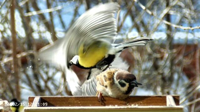 Воробьи в кормушке -