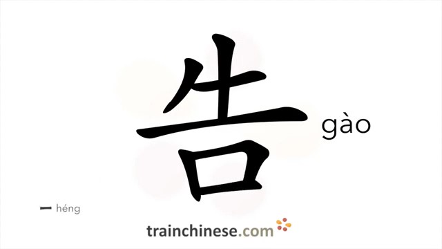 告 (gào) to inform, tell / говорить, объявлять, обращаться к (кому-л.); уведомлять (кого-л.)