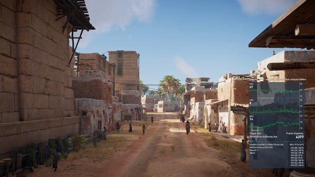 Does the GTX1070 handle Assasin's Creed Origins in 1440p and Max Settings with a smooth 60FPS? Yes it does, nearly everywhere. I played the game now for ca. 35 hours and most of the time the fps stay constant at 60fps. Just in Memphis looks a bit weird when it drops down to 50-55fps sometimes. So overall its a very smooth experience! The Game Settings are maxed out on 1440p. Only Anti Aliasing was set to Low, but you only see the difference when looking close to a standing picture. I recorded the footage with Nvidia Shadowplay / Experience. Compared to a Benchmark Run without recording it lost aprox. 4% of the score. The GPU is a Gainward Phoenix GTX 1070 GS. Driver are updated to the last recent version. Game runs the latest update, also Windows 10 is updatet to the last version.