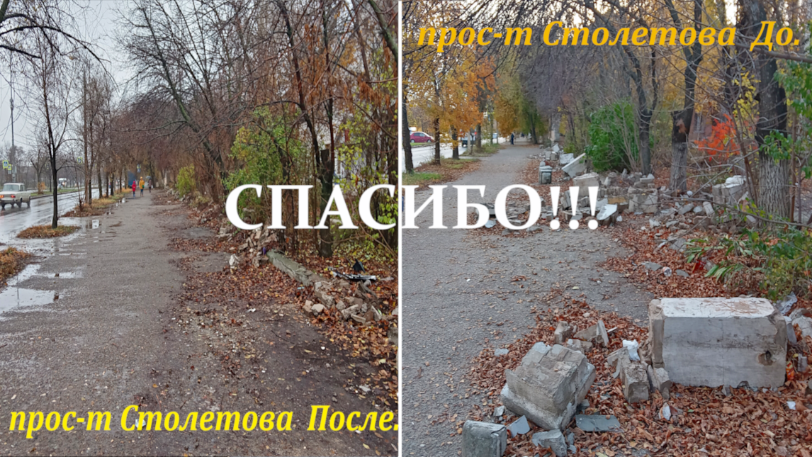 Хочу сказать большое спасибо администрации Красноармейского района г. Волгограда. За то что сдержали своё слово и навели порядок на пешеходной зоне по проспекту Столетова. А также поблагодарить простых рабочих, тех кто выполнял данную тяжелую работу! Спасибо Вам всем, Люди.