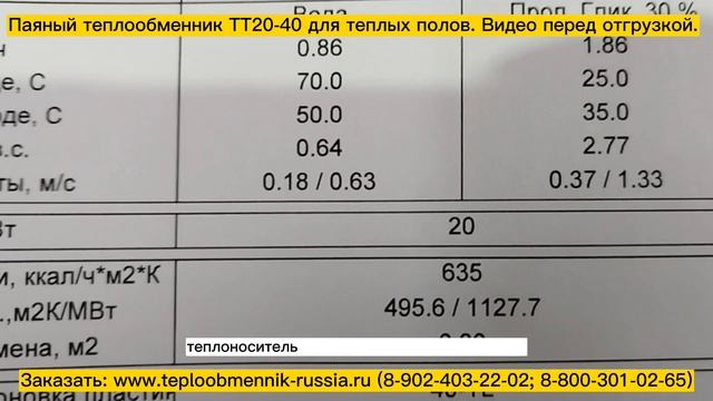Паяный теплообменник ТТ20-40, 20кВт для теплых полов площадь 130м2. Видео перед отгрузкой.