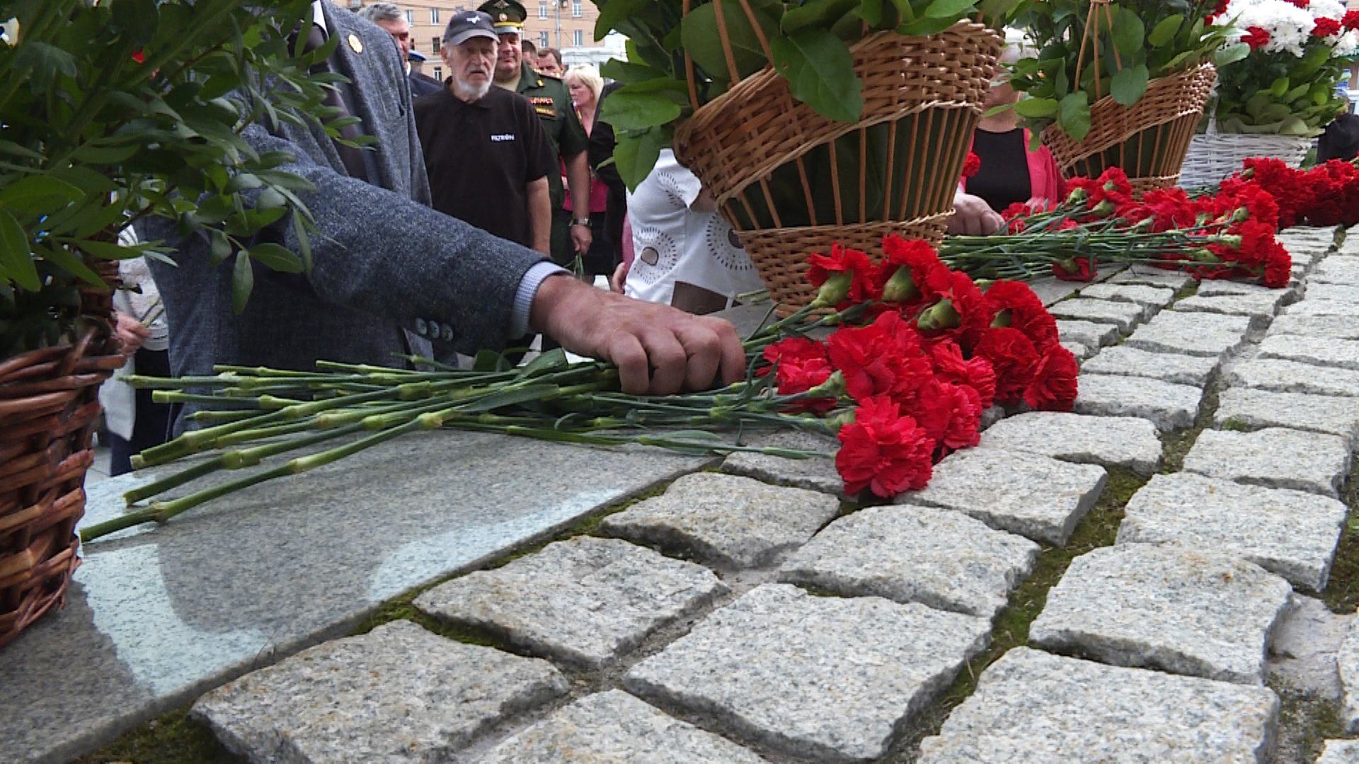 Ветераны, труженики тыла, члены областного Правительства этим утром возложили цветы к Вечному огню на площади Победы.